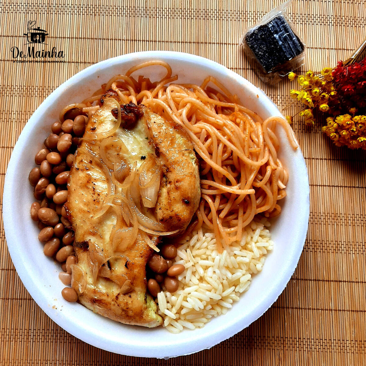 Filé de Frango suculento, temperado com especiarias e no óleo finalizada com cebolas em tiras. O ''basiquinho'' que todo mundo ama! Escolha até 3 opções de acompanhamentos: Arroz, Feijão de Caldo, Feijão Tropeiro, Macarrão e Salada. Obs: -Embalagem Pt 102. -Ideal para uma pessoa. Esperamos que você tenha uma ótima experiência com a gente. Foto Real