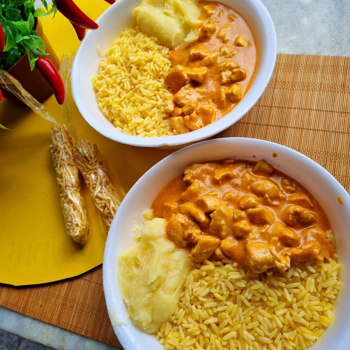Nessa mega promoção você leva 2 pratos + um refri de 1L! Peito de Frango Cortado em Cubos temperado com sal e especiarias, cozido com molho de tomate, catchup e mostarda e finalizado com creme de leite, dando toda cremosidade ao seu strogonoff. Acompanha: Arroz Temperado, Purê de Batata e Batata Palha Obs: -Embalagem Pt 102. -Ideal para uma pessoa. Esperamos que você tenha uma ótima experiência com a gente. Foto real Tags: Strogonoff de Frango, Estrogonofe de Frango, Estrogonofe, Strogonoff