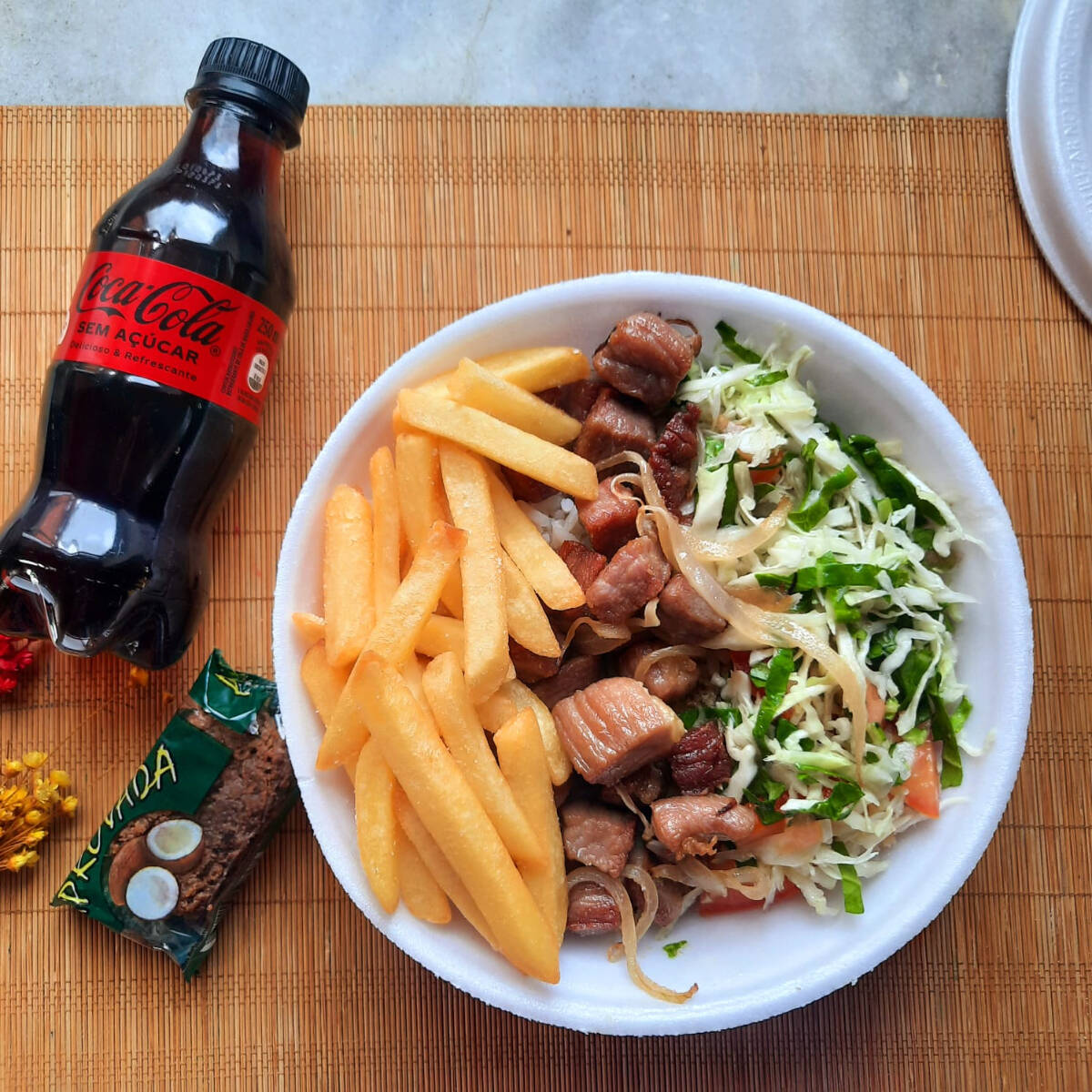 Delicie-se com nossas irresistíveis tiras de peito de frango, marinadas em especiarias, empanadas e fritas na perfeição! Obs: -Embalagem Pt 102. -Ideal para uma pessoa. Esperamos que você tenha uma ótima experiência com a gente. Foto Real - Não Acompanha Coca-Cola E Nem Paçoquita