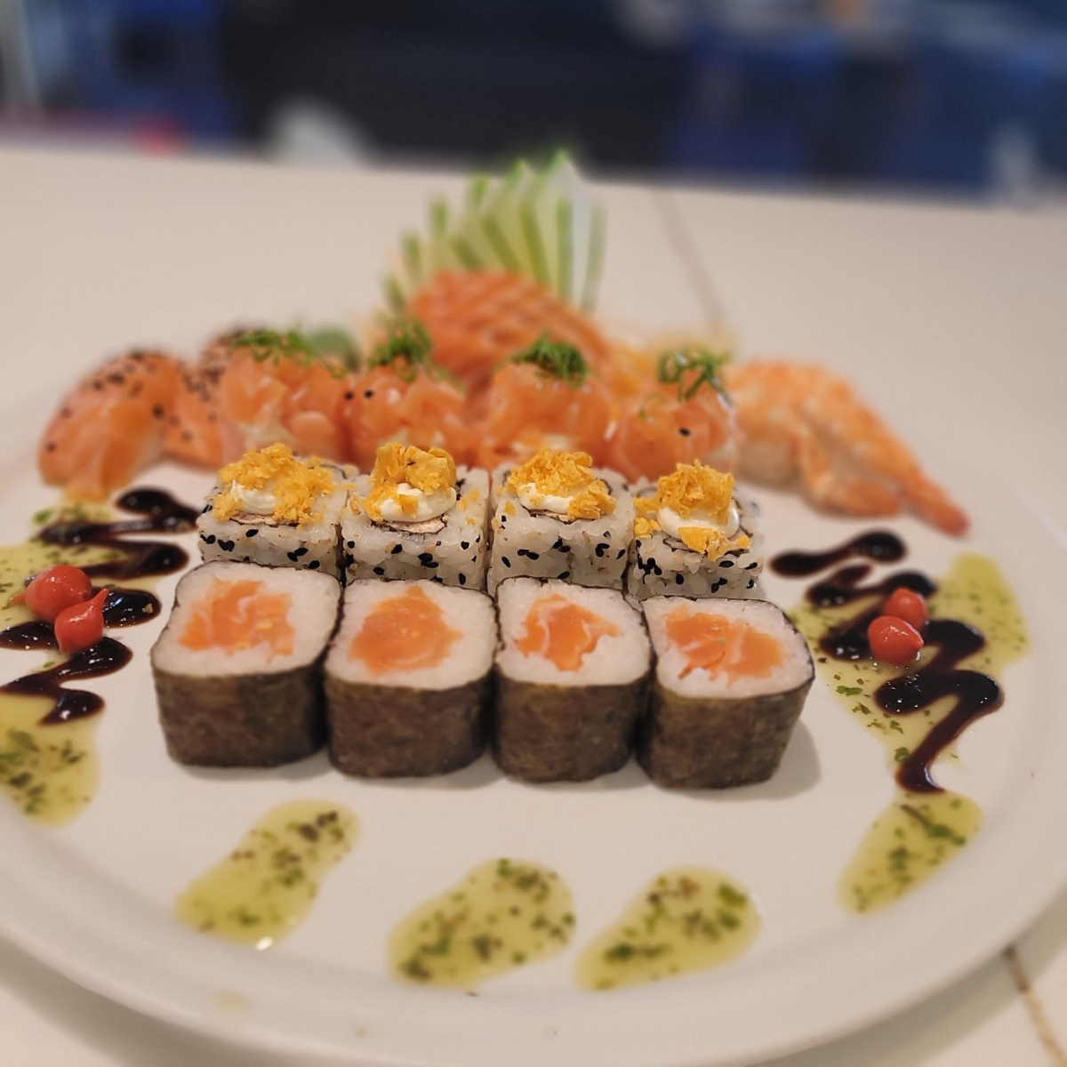 Combinado Hot 30 Peças (5 Sashimis Maçaricado, 5 Hot Holl, 5 Shake Couve, 5 Hot Furai, 5 Acelga Mali, 5 Hot Filadelfia)