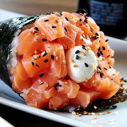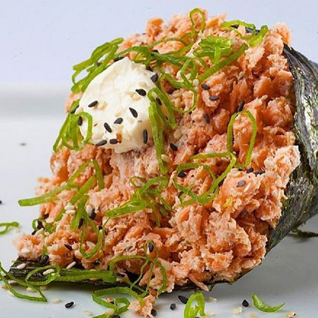 Temaki Massaricado 2 Proteínas (opções: Salmão Cru, Salmão Grelhado, Atum, Camarão, Kanin)