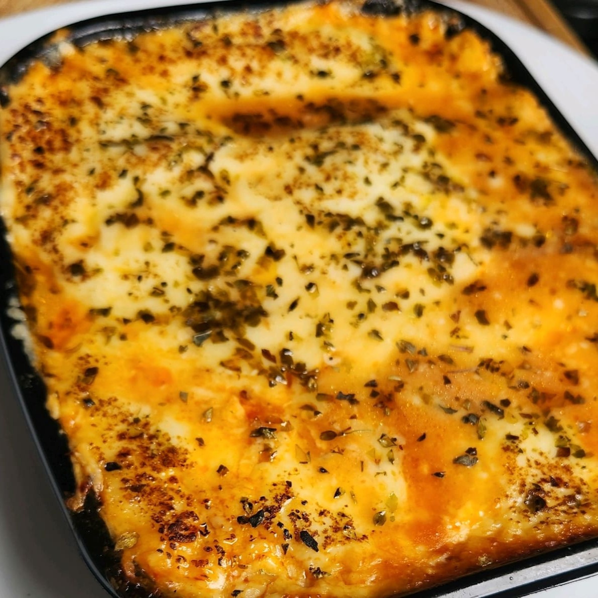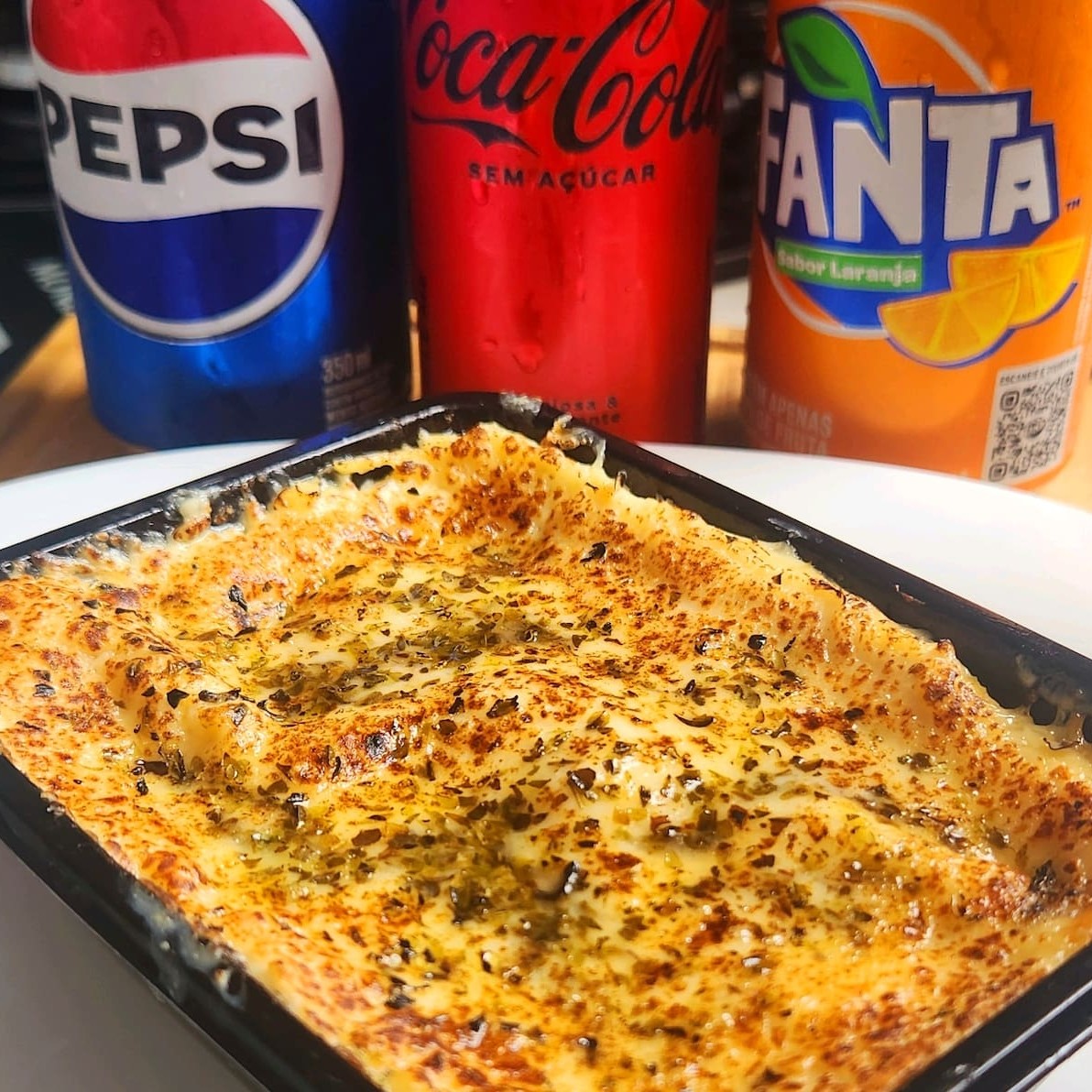 Camadas de massa, carne moída, presunto e molho vermelho, coberta com um toque de molho branco e uma camada crocante de queijo gratinado. Uma explosão de sabores em cada garfada! ️