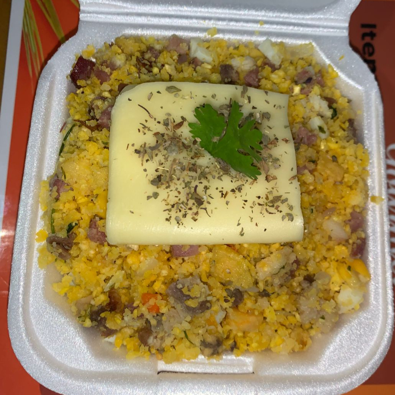 Cuscuz bem temperado preparado com calabresa, charque desfiado, bacon crocante, ovos , milho, cebola, cheiro-verde e banana da terra, criando aquela mistura perfeita de sabor nordestino.