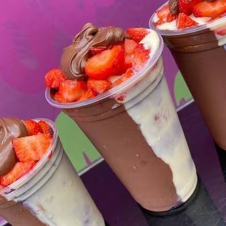 1 Sabor + Creme de Avelã + Amendoim + Leite em pó + Bombom Ferreiro + Morango (fruta)
