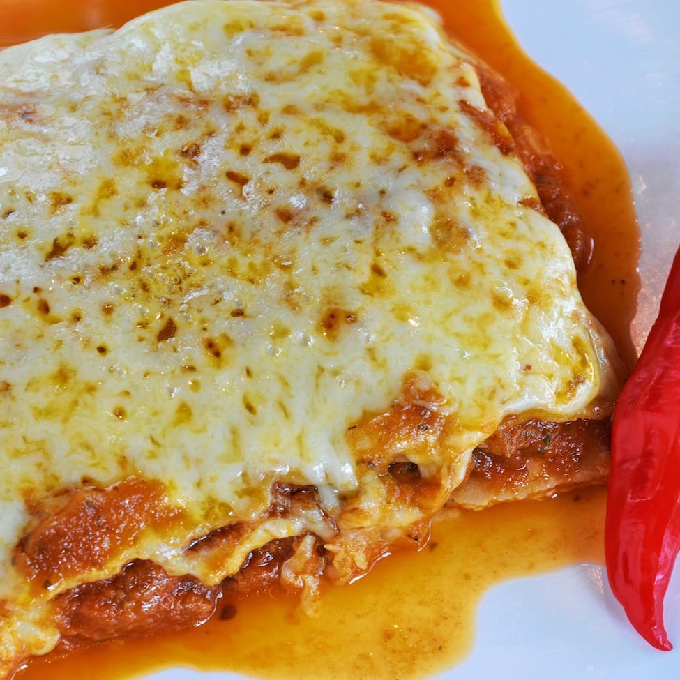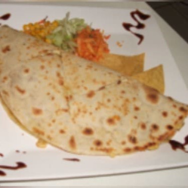Duas tortillas de trigo assada, recheda com queijo mussarela e a proteina a escolha, so cima um delicioso molho de salsa vermelha e queijo mussarela.