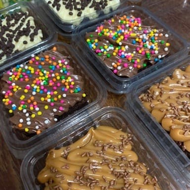 Brownies Gourmet com cobertura e confeitos! Sem conservantes, nada enlatado.