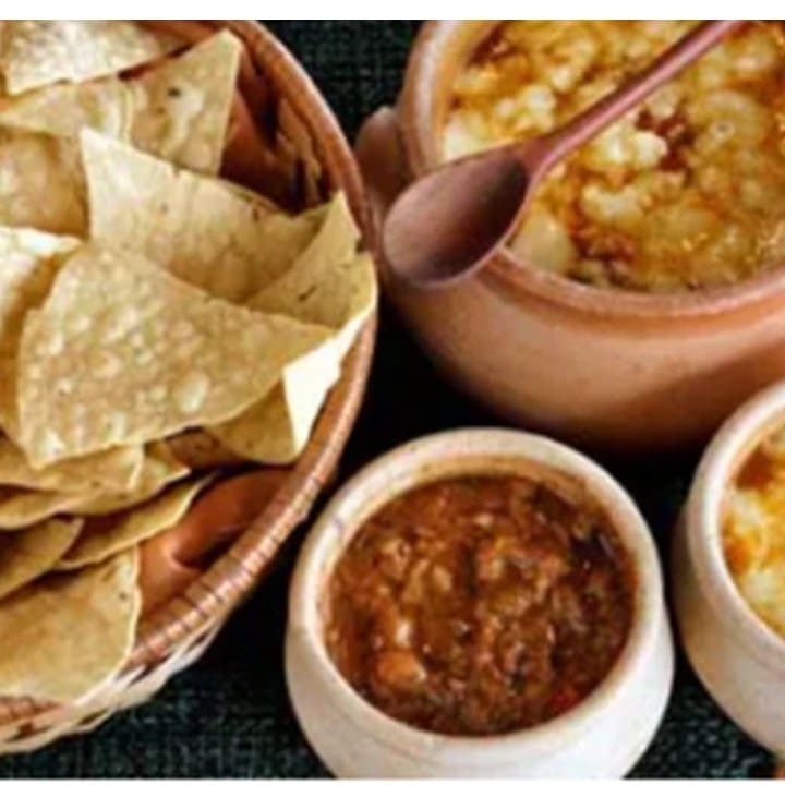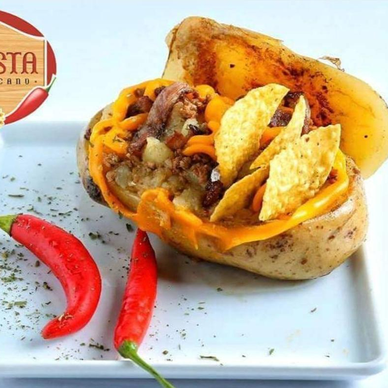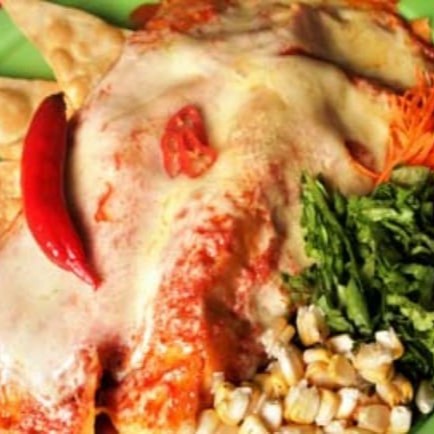 Delicioso molho de salasa vermelha, carne moída e queijo mussarela derretido, acompanha totopos.