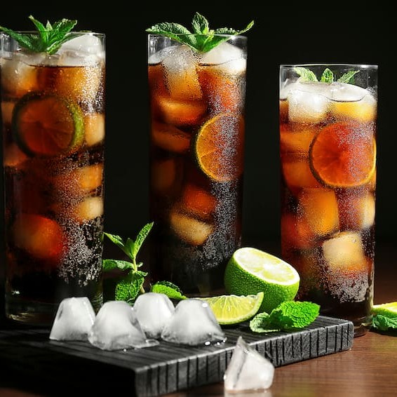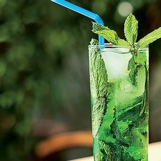 Bacardi, suco de limão, hortelã, açúcar, Soda limonada e gelo!