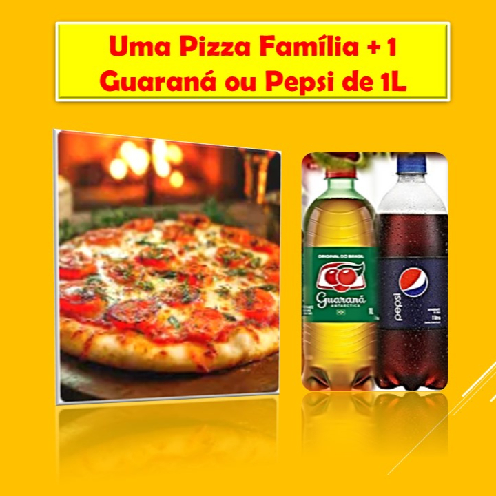 Uma pizza família com um refrigerante de 1L - Pepsi ou Guaraná