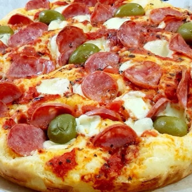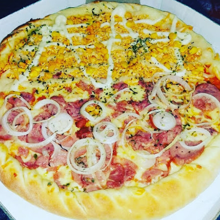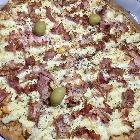 Mussarela, calabresa, bacon, cebola, orégano, azeitona