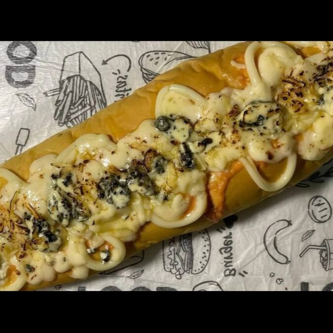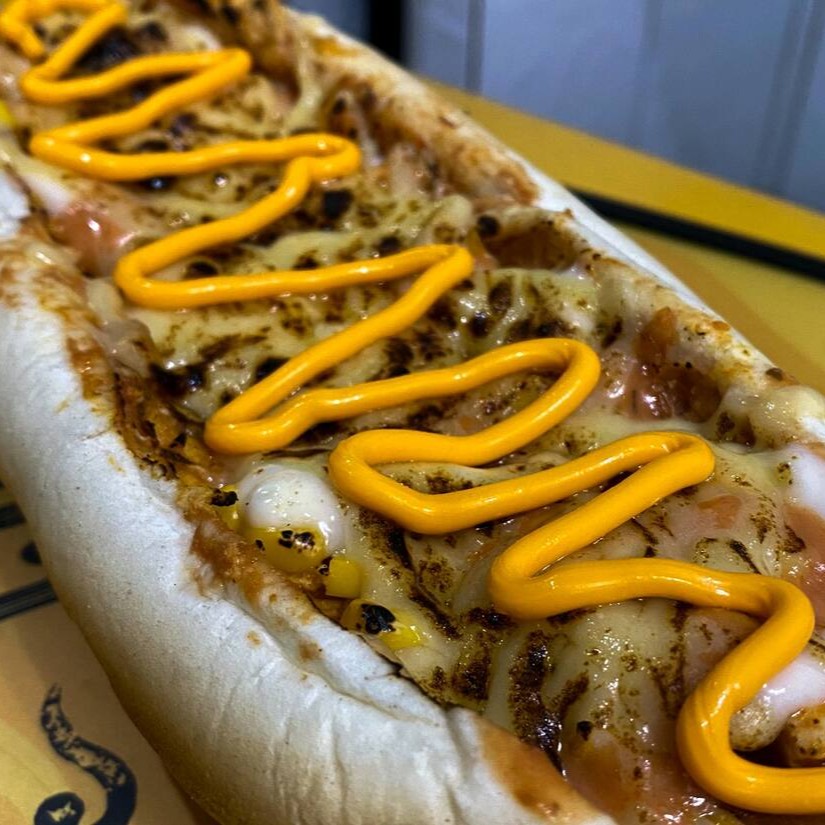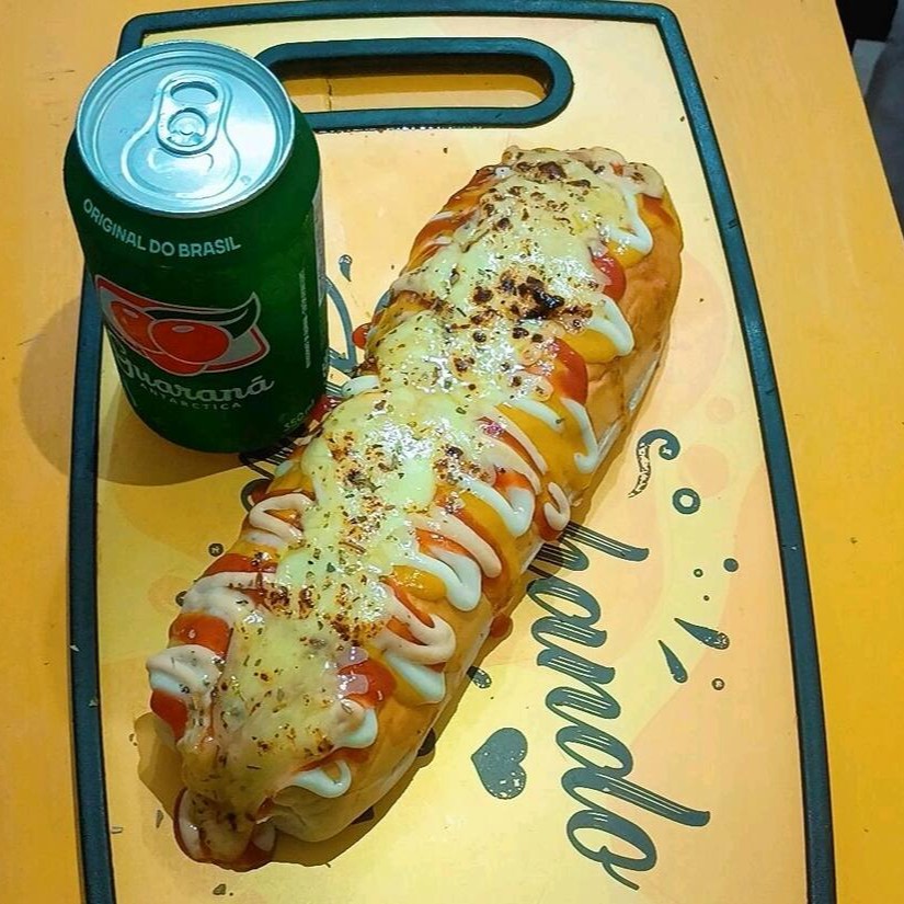 Dogão no Pão tradicional 20cm, 2 Salsichas, Molho secreto da Casa, Requeijão cremoso Catupiry, queijo gorgonzola, queijo parmesão ralado e mussarela maçaricada!