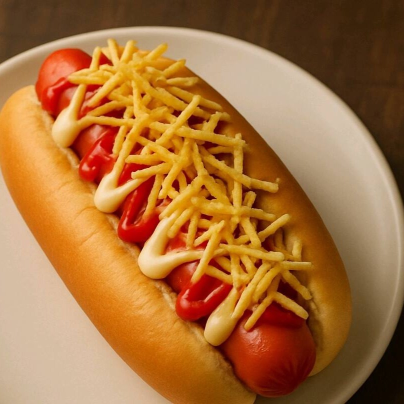 Pão 15cm, 1 salsicha, molho gourmet, ketchup, maionese, mostarda e batata palha na medida certa. Perfeito pra matar a fome com muito sabor e praticidade! O Clássico que nunca sai de moda!