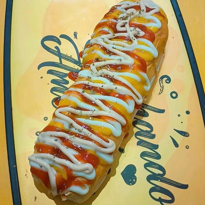 Delicioso Pão macio de 20cm com Molho especial da casa 2 salsichas Calabresa, Catupiry e Batata palha Obs: Não vai mussarela!