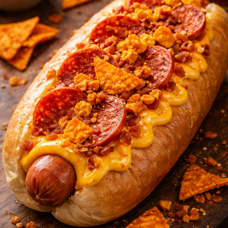 Dogão Doritos Calabresa Dogão de 20cm no pão macio, molho especial da casa, 2 salsichas, cheddar cremoso, calabresa suculenta e Doritos crocante por cima, trazendo a combinação perfeita de cremosidade, sabor marcante e crocância. Um dogão ousado e viciante! Foto meramente ilustrativa #hotdog #dogão #doguinho #gourmet #entregagrátis #refrigerantes #hotdoggoumert #promoção #combos #Doritos #queijomaçaricado