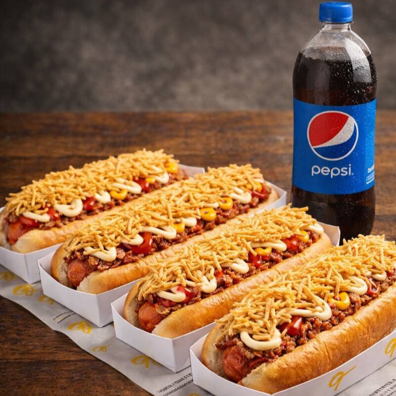 Combo Família! 4 Dogões Tradicional da Casa+ 1 Refrigerante Litro + Entrega Grátis!