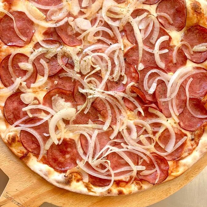 Pizza Grande - Massa Tradicional - Metade Calabresa e Metade Lombo defumado