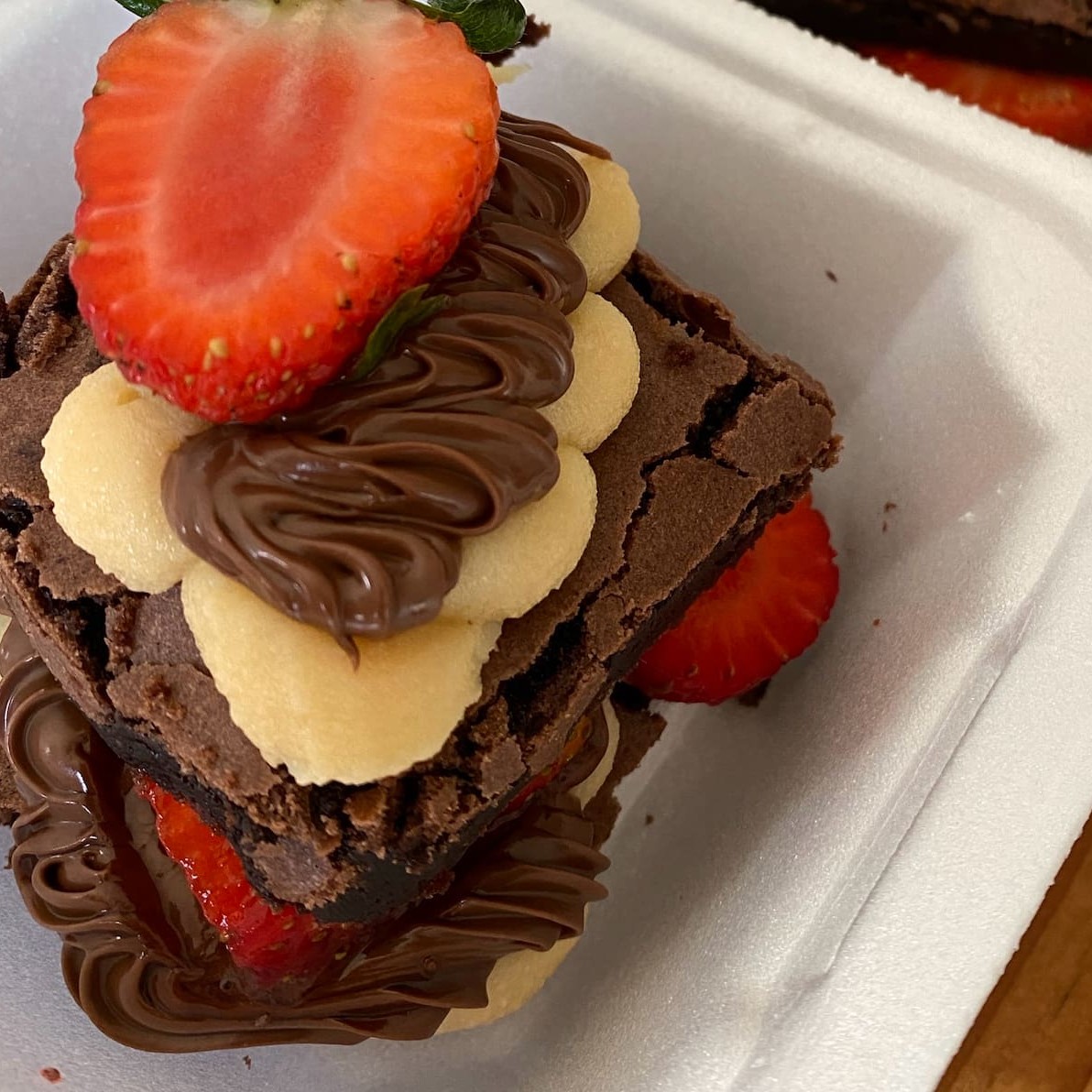 Creme de Ninho|pedaços de morango | Nutella|brownie.