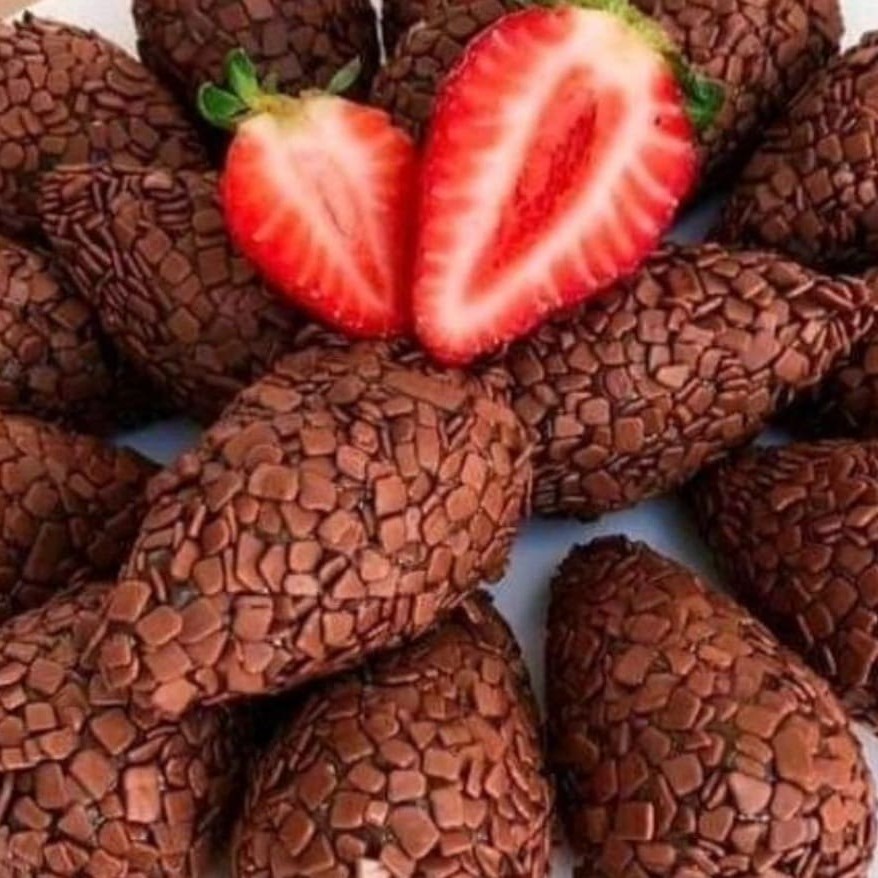 Descubra o sabor irresistível e marcante da nossa coxinha de morango. Doçura natural do morango fresco e selecionado coberto com brigadeiro gourmet ao leite, finalizado com granulado nobre de chocolate.