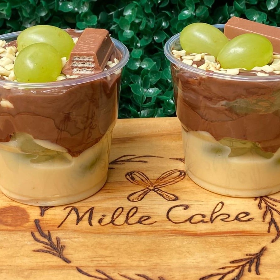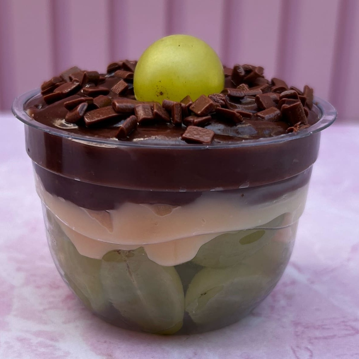 Na versão uva verde sem caroço picadinha, com uma dupla camada de brigadeiros.