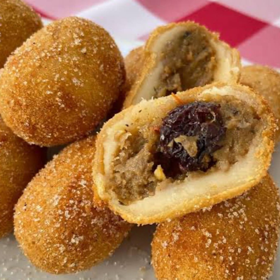 Massa suculenta de batata, receheio de queijo mussarela, empanada na farinha panko, elevando sua crocancia.