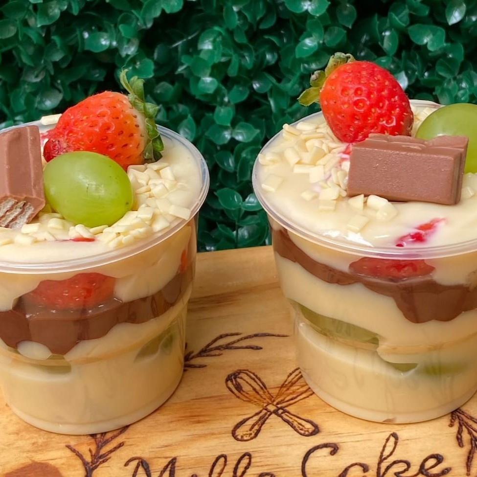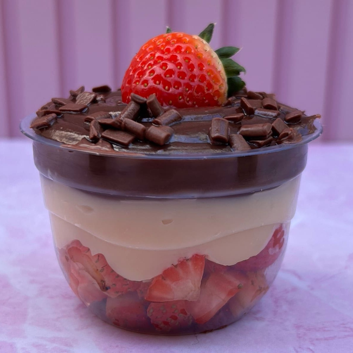Morango fresco picadinhos e duplas camada de brigadeiros.150 g