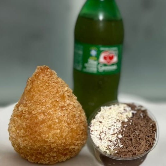 Coxinha De Frango Com Catupiry + Refreigerante + Brigadeiro De Colher.