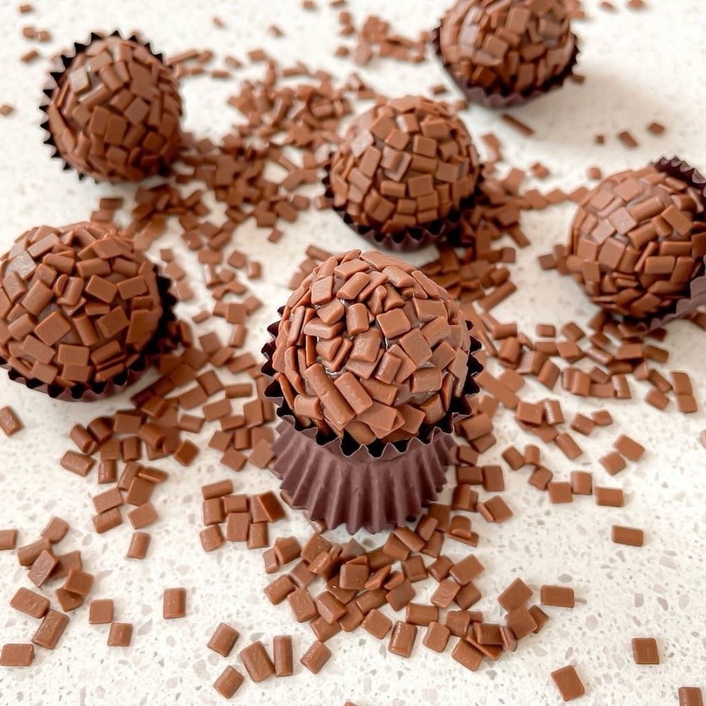 Brigadeiro gourmet ao leite de colher, super cremoso e saboroso m, finalizado com granulado nobre de chocolate.