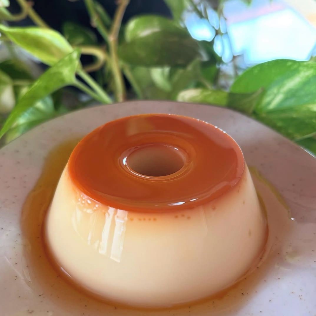 Pudim de leite, suculento e cremoso com calda de caramelo. 80 ml