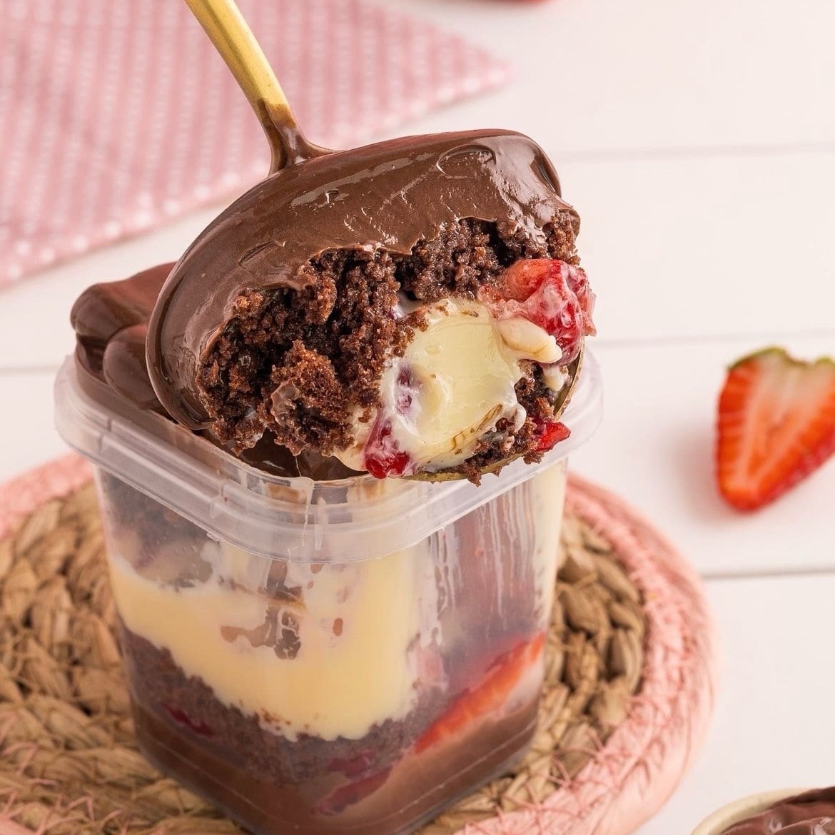 Bolo No Pote - Chocolate Com Ninho E Morango (220gramas)