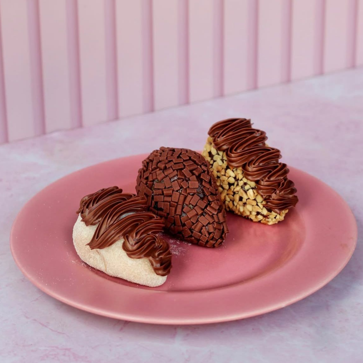 Coxinha de mongaro nos sabores , brigadeiro, ferreiro rocher e ninho com nutella. a nutella vai no saquinho para o cliente decorar