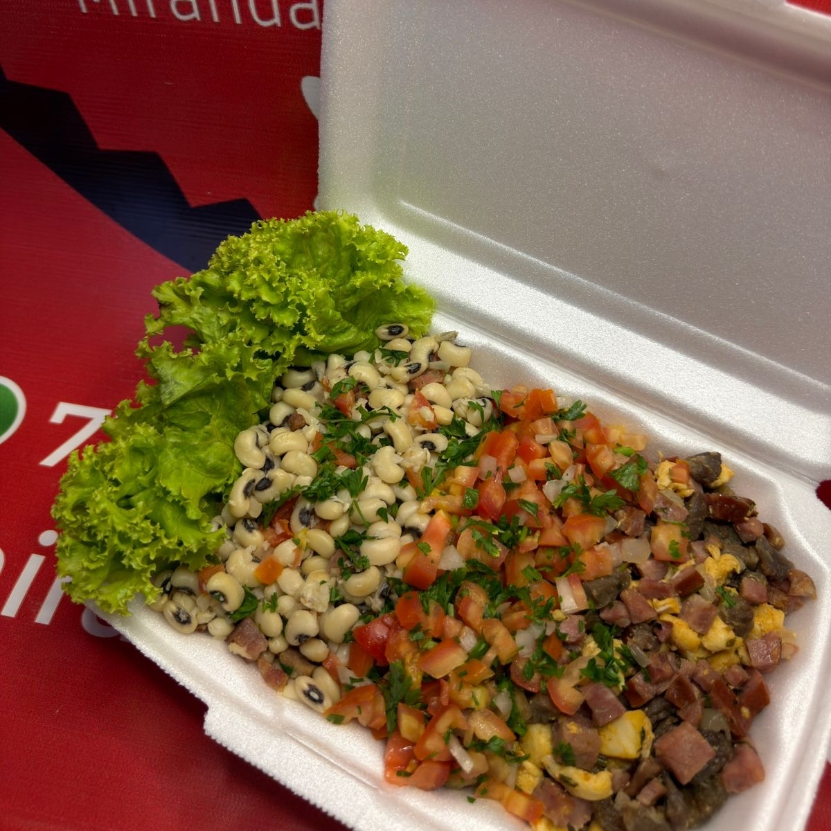 Feijão fradinho, carne do sol, frango, calabresa e salada vinagrete