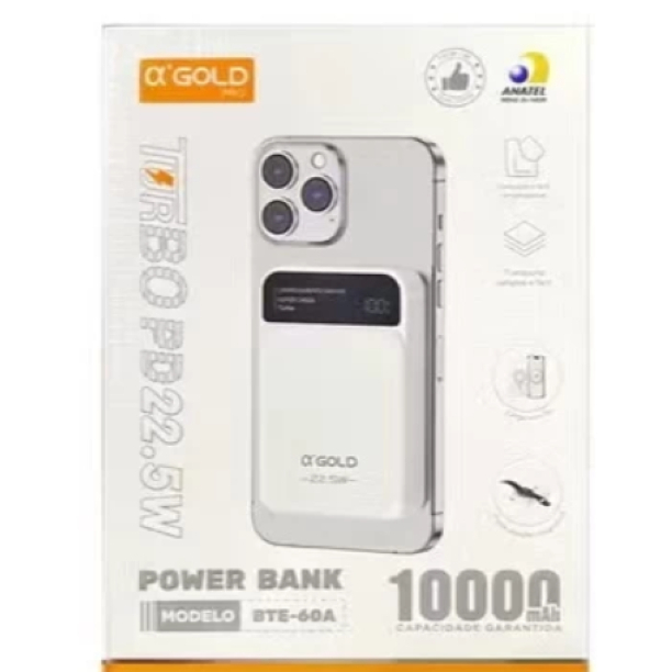 Carregador Magnetico Sem Fio Power Bank 10.000 Mah Agold Bte-07b