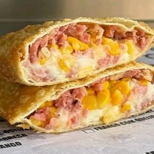 Pastel recheado com uma mistura de calabresa, milho, mussarela, Catupiry. Uma opção deliciosa e cheia de sabor!