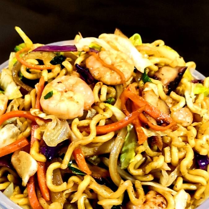 Delicioso Yakisoba de camarão com legumes, porção Grande (aprx. 2 kg)