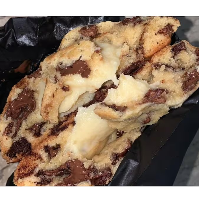 Nossa massa especial Monster Cookie trazendo um cookie crocante por fora e molhadinho por dentro, com um mega recheio de Ninho cremoso gourmet!