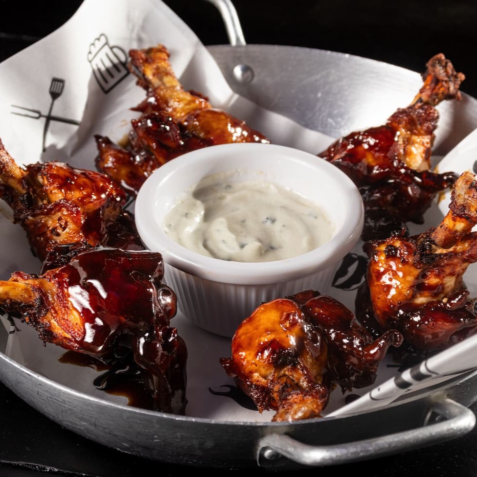 6 asinhas de frango com tempero da casa envolvidos no molho barbecue artesanal. Acompanha: molho gorgonzola