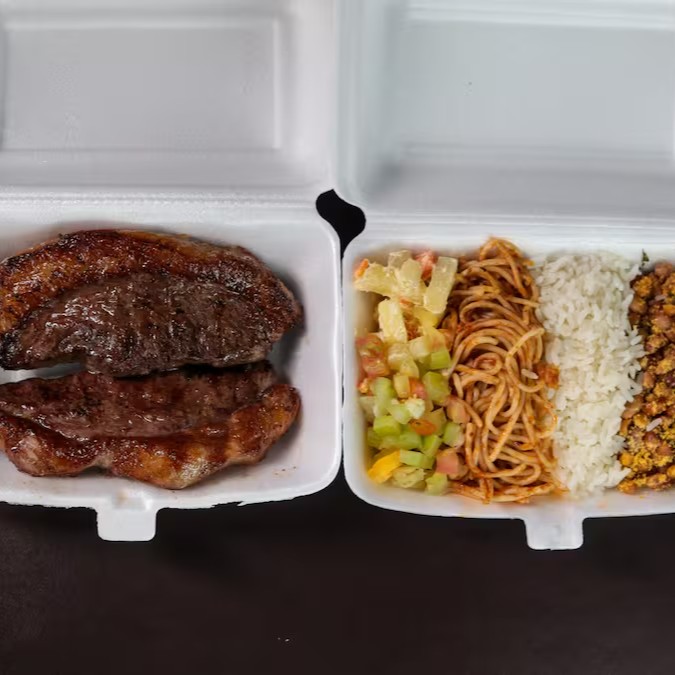 Acompanha: Feijão, arroz, macarrão e Salada Vinagrete