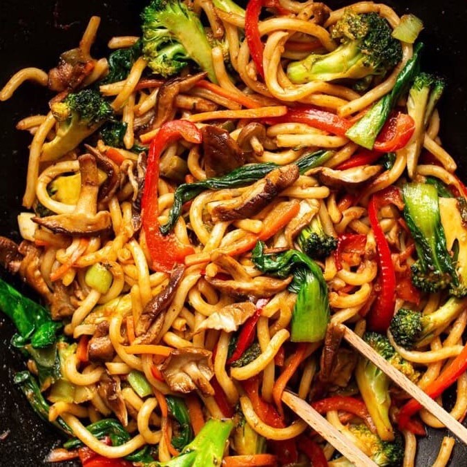 Legumes e massa refolgados no molho shoyu e molho do chef. Acompanha 1 sachê de molho Shoyu, 1 Sachê de Agridoce e 1 par de hashi.