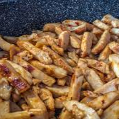 Tiras de filé suíno (porco)Legumes e Massa refolgados no molho shoyu e molho do Chef. Acompanha 1 sachê de molho Shoyu, 1 Sachê de Agridoce e 1 par de hashi.