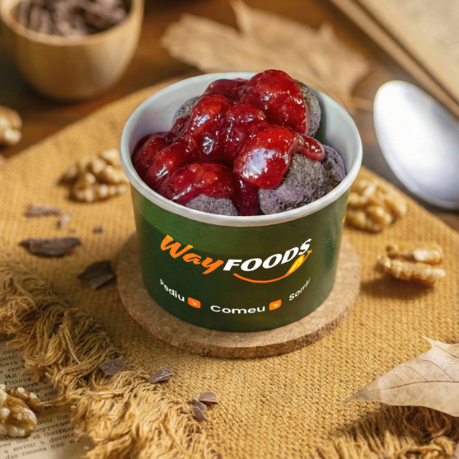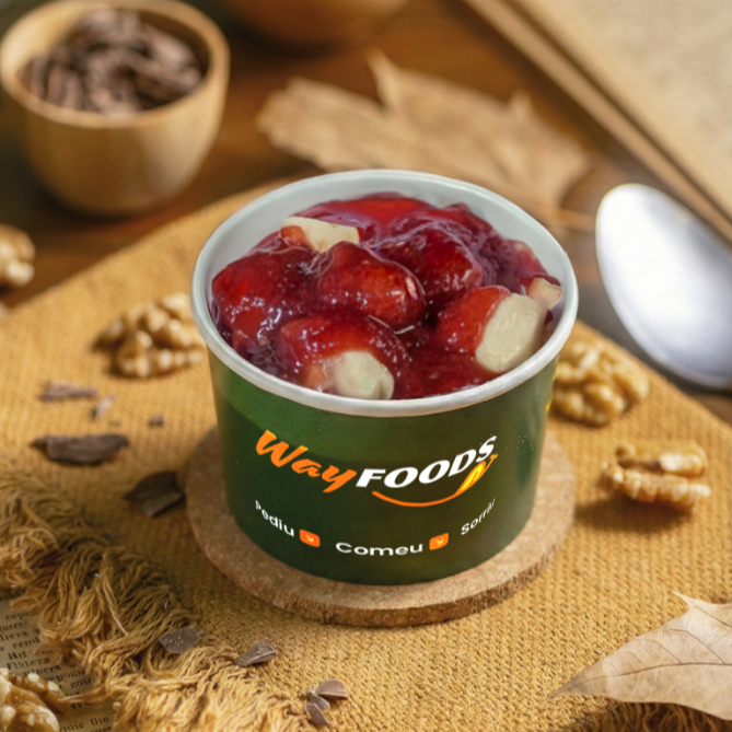 Nhoque inovador e delicioso feito com biscoito, coberto com uma saborosa geleia de morango artesanal, proporcionando uma combinação perfeita de sabores doces e frutados, ideal para quem procura uma sobremesa diferente e tentadora.