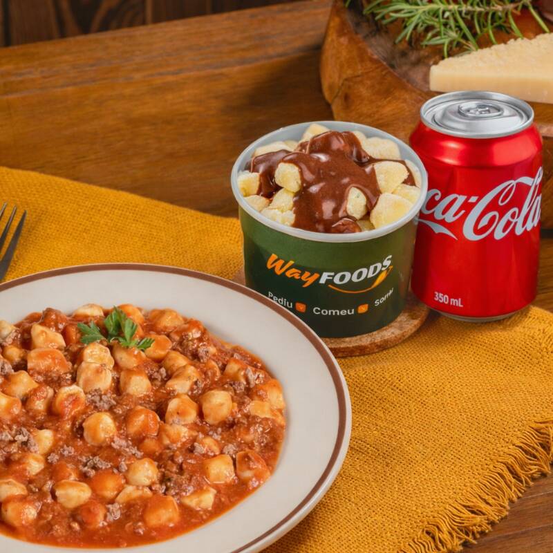 1 Nhoque Médio + Refrigerante Lata + Sobremesa