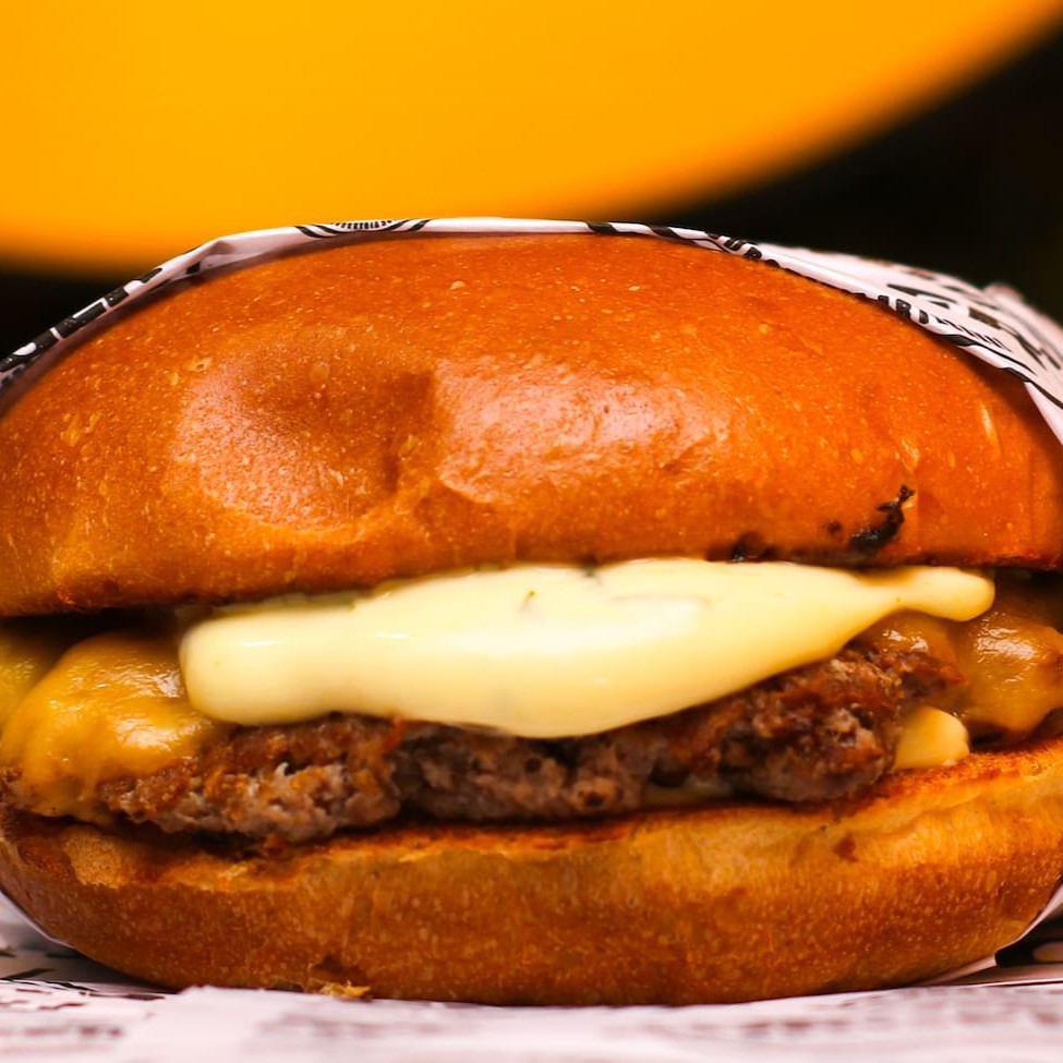 Clássico smash de carne , no pão de batata, queijo prato derretido e nossa maravilhosa maionese de ervas .