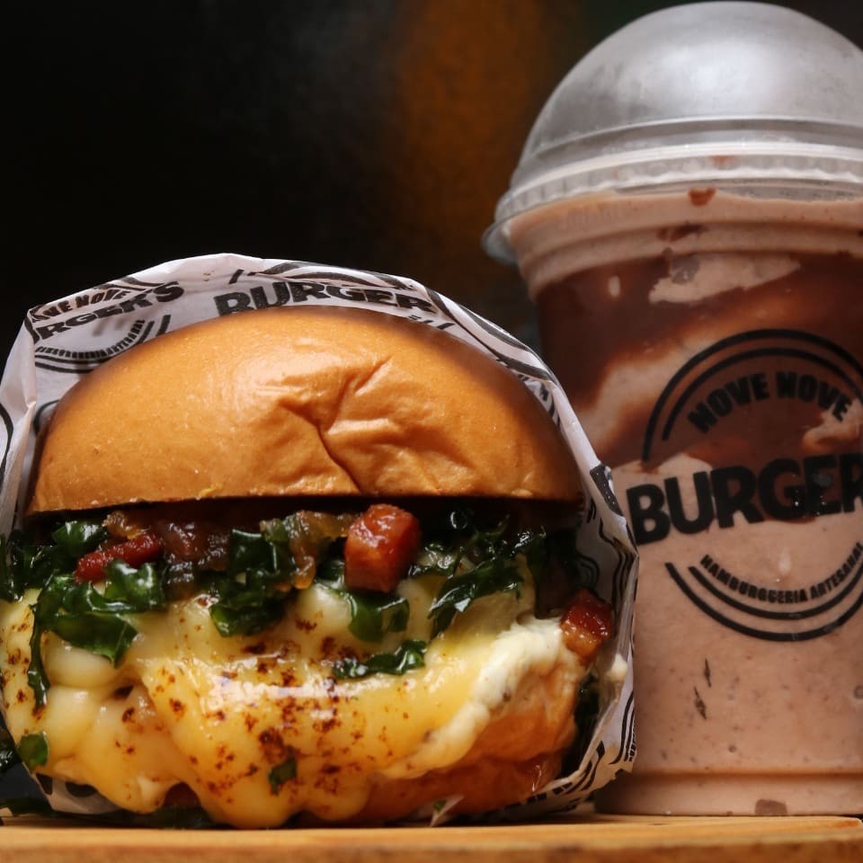 Nosso maravilhoso Amsterdan ( Pão brioche, maionese da casa, blend 180g suculento, Couve Crispy e a Perfeita geleia de bacon). e nosso também incrível Milk-shake de Nutella.