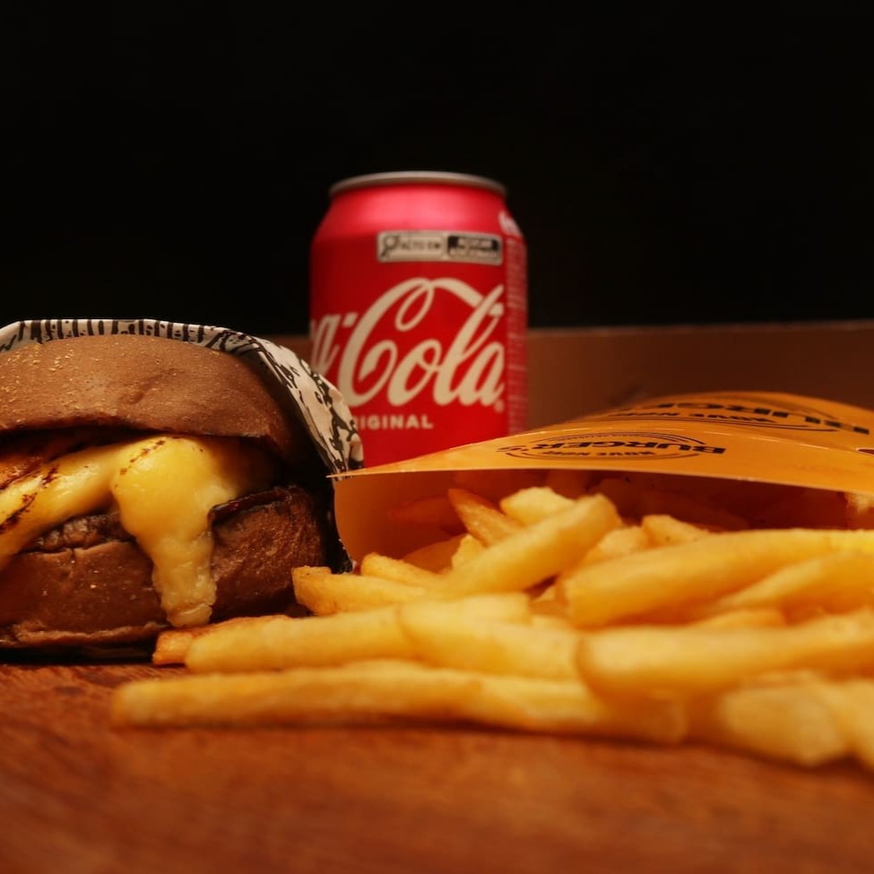 Pão de batata fresquinho, suculento blend de carne 180g , queijo prato derretido no maçarico, bacon crocante, alface americana, tomate e maravilhoso molho 99burgers. Batata frita sequinha e refrigerante em lata Uma combinação excelente.
