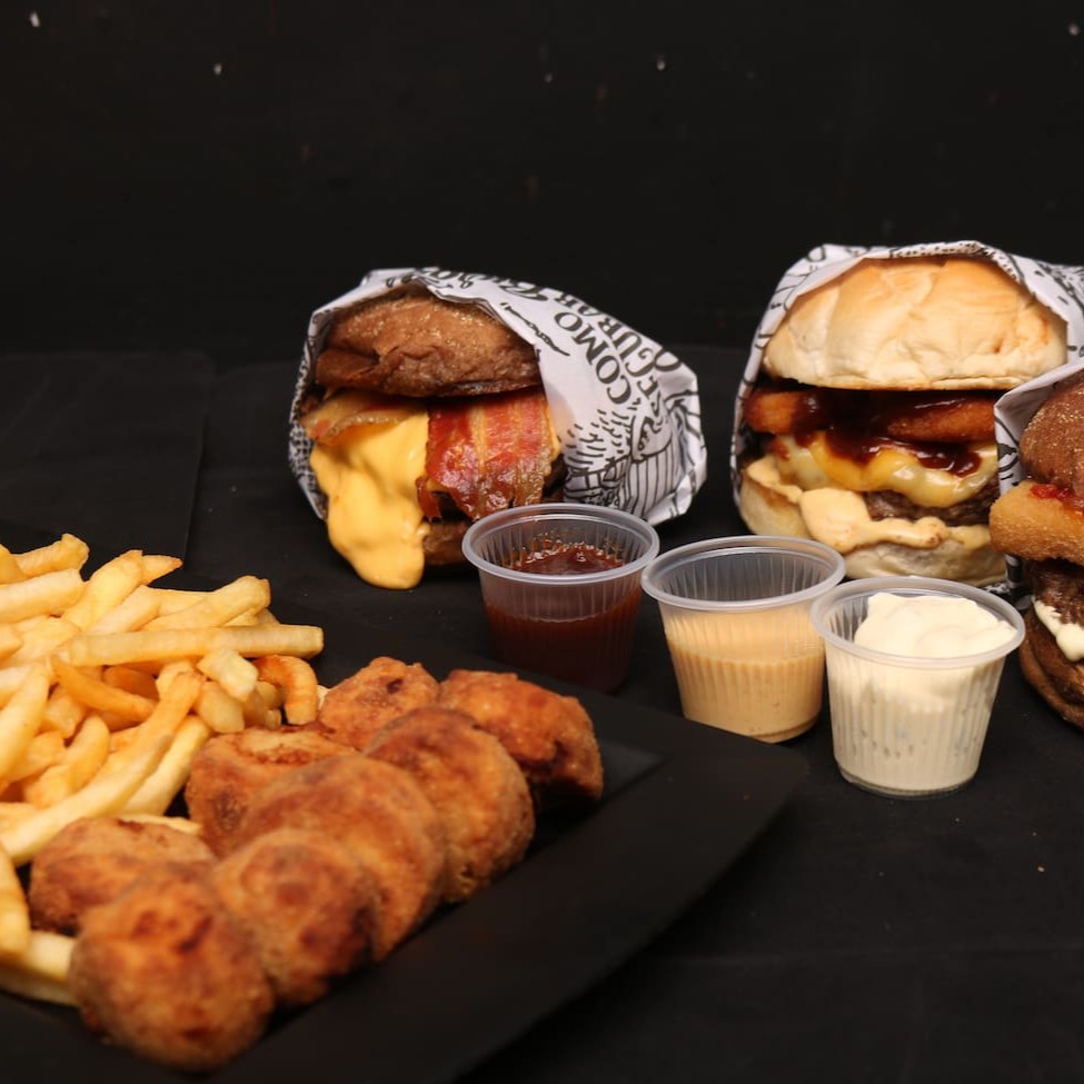 Nosso Maravilhoso combo para 2 pessoas, com 2 Burgers da sua escolha , Batata Frita com nosso Maravilhoso creme de Queijo produzido na casa e Refrigerante de 1 litro Grátis da sua escolha