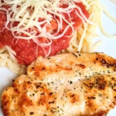 Um classico que todo mundo ama, massa ao molho de sua escolha acompanhado de filé de frango grelhado.