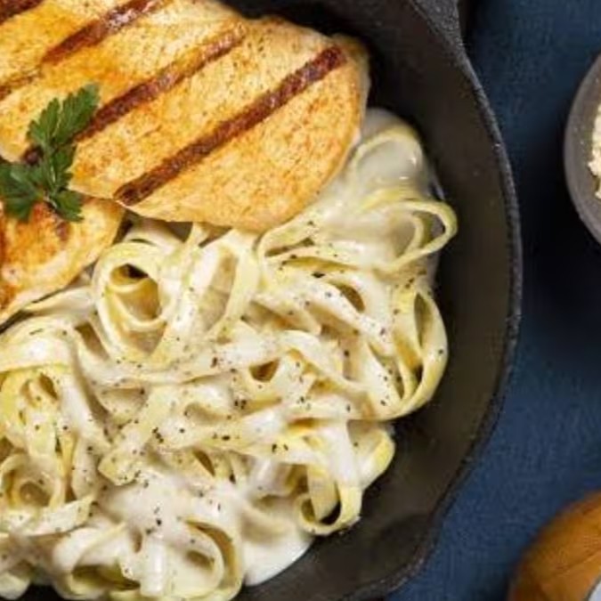 Massa Ao Molho De Queijo Com Filé De Frango