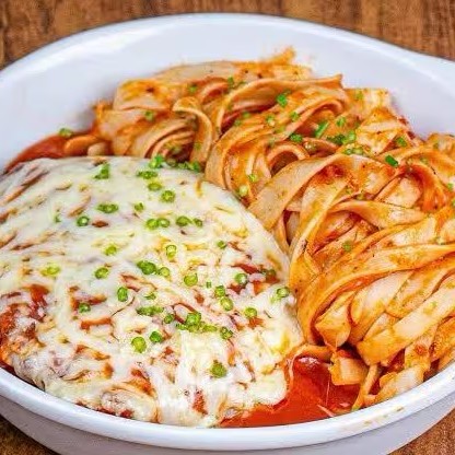 Parmegiana de Frango ou Carne com Massa ao Molho Para 2 Pessoas (Servido em embalagens separadas)