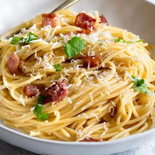 Quem prova se apaixona, incrível combinação de bacon com molho especial de creme de leite, leite, parmesão e ovo.