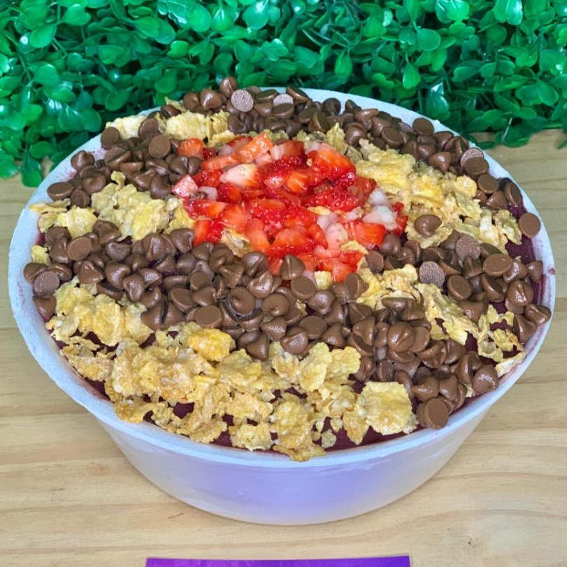 Escolha o sabor do Açaí + 6 acompanhamentos grátis que são enviados dentro do pote em camadas. Açaí Premium Cremoso e saboroso pra comer com a galera toda